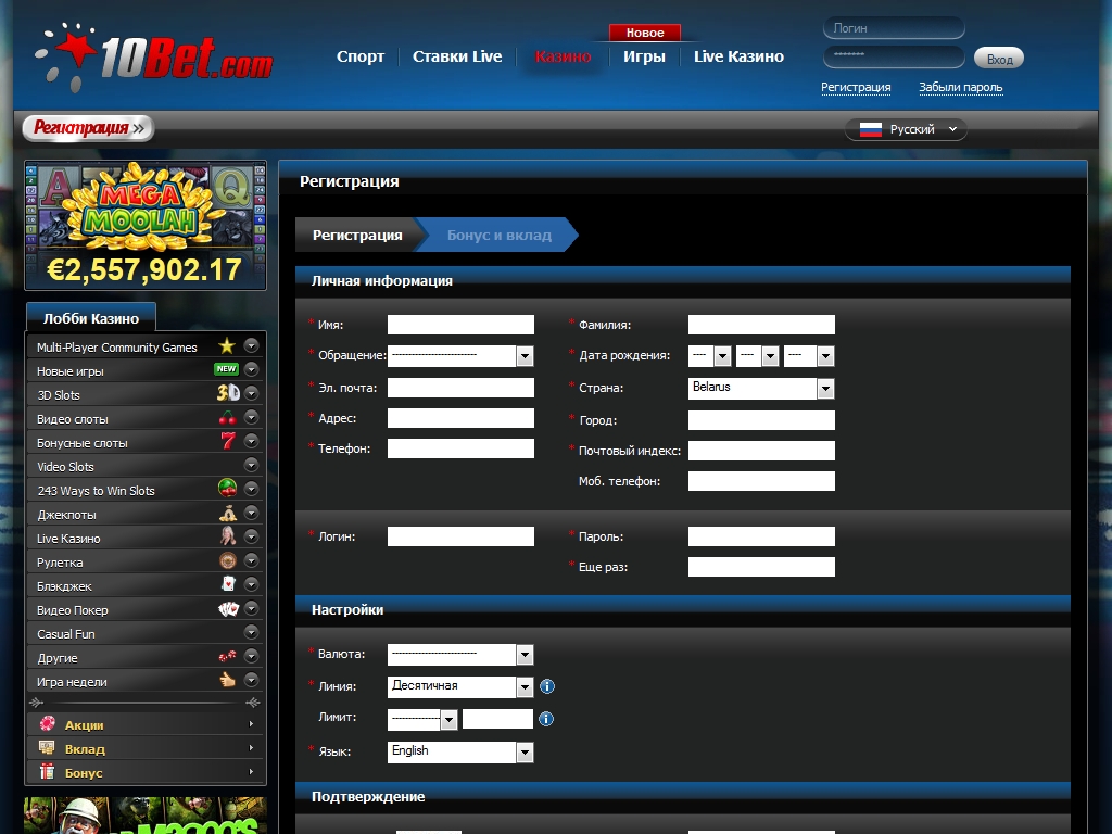 Загрузка программного обеспечения не требуется, так как оба казино 10Bet работают во флеш-режиме. Сайт переведен на несколько языков.