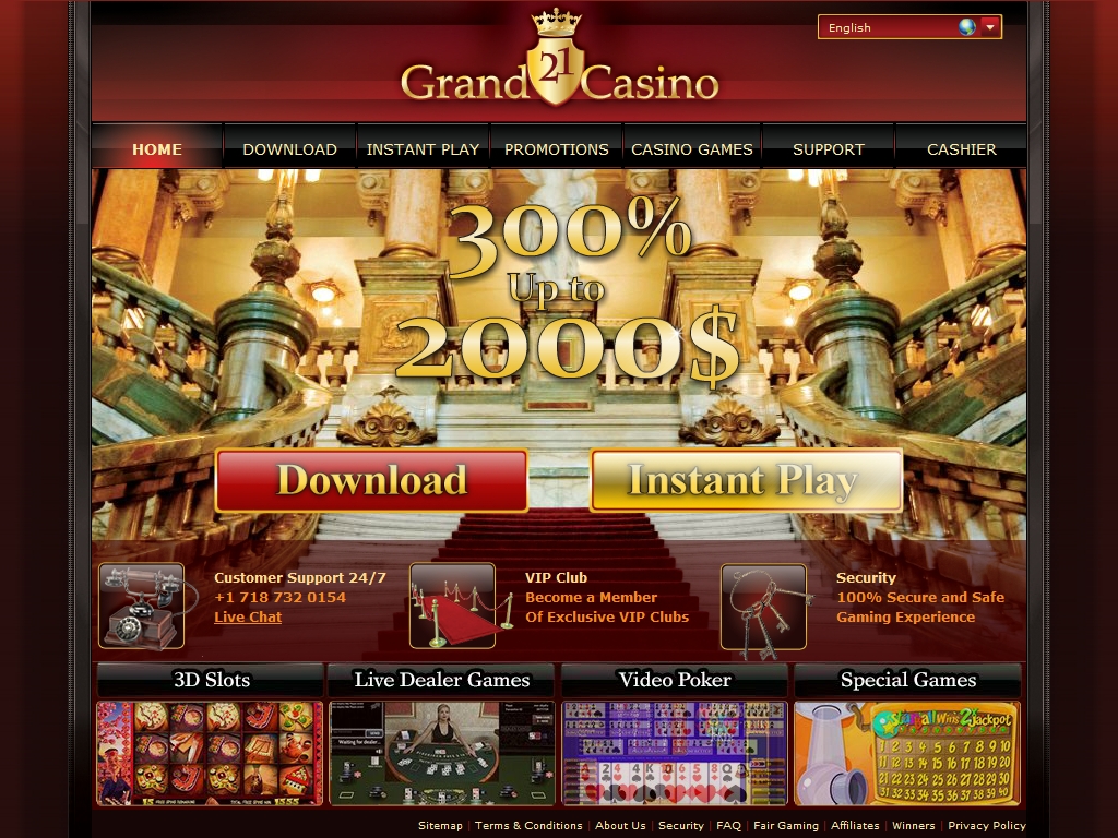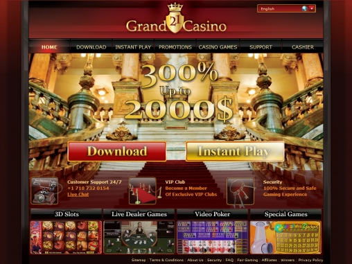 Казино 21Гранд- это довольно увлекательный игровой портал!Сайт оформлен в красивых тонах,по богатому!Хороший выбор азартных игр!Здесь вы можете поиграть с живыми диллерами,что делает игру ещё более интереснее!Достойная бонусная политика!