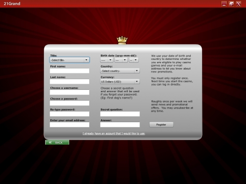 21Grand – это проект известной компании Cyberrock Entertainment, которая также является оператором нескольких других достаточно популярных онлайн-казино. Информацию о лицензиях учредителей, головном офисе и прочих важных аспектах желающие смогут найти на официальном сайте.