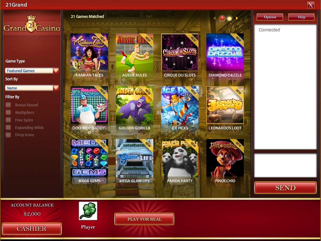 Если вы откроете 21Grand в браузере, вы увидите, что на странице Games все игры удобным образом каталогизированы. Прежде всего, они разбиты по следующим группам: