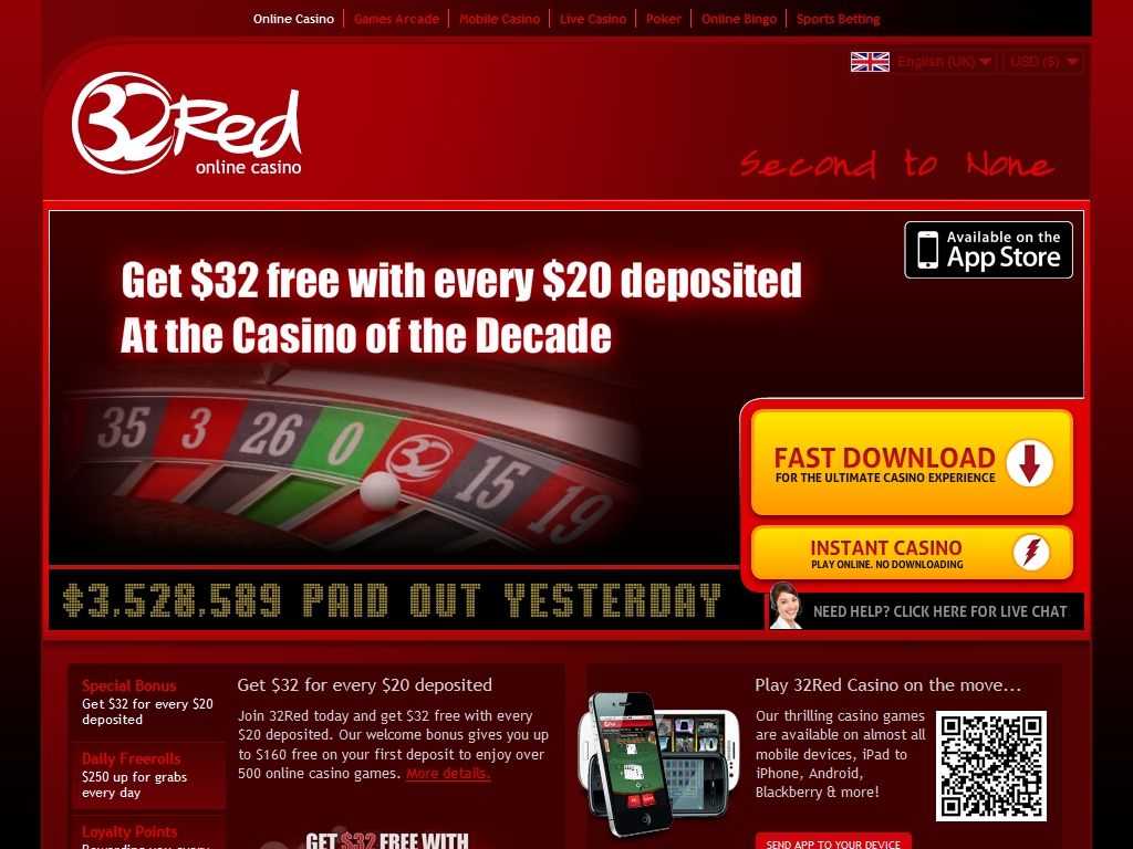 Обширное разнообразие игр, великолепная бонусная программа, превосходная служба поддержки и высочайший уровень надежности делают 32Red Online Casino одним из лучших виртуальных казино, доступных в настоящее время. Множество различных наград и титулов служат лучшим тому подтверждением. Подводя итог всему сказанному выше, можно прийти к заключению, что определение «непревзойденное», которое дали своему