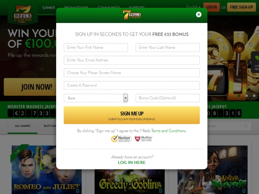 Чтобы зарегистрироваться, нужно на специальной странице внести ряд данных в анкету. Обратите внимание, что администрация запрещает открывать счета пользователям из России, Украины и некоторых других стран, перечисленных ниже обзора. На сайте также можно увидеть логотип с перечеркнутым флагом США, но, похоже, американцам все же разрешено играть в казино «7 барабанов» на деньги.