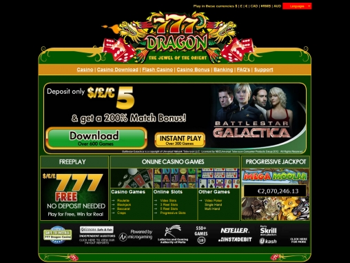Игровую платформу для 777 Дракон разработала компания Микрогейминг, которая имеет солидную репутацию среди производителей софтов. Особенно эту именитую фирму любят жители Европы, так как все казино, сотрудничающие с ней, ведут политику, рассчитанную именно на европейцев. Чтобы начать играть, нужно скачать казино. Загрузка программы завершится через несколько минут, и после этого пользователь может начать игру. Если клиент по каким-либо причинам не хочет скачивать софт, то ему предоставляется возможность сыграть прямо на сайте. Но в этом случае пользователь будет ограничен в некоторых действиях. Поэтому скачать клиентскую программу все-таки предпочтительнее. Играть можно на фунты стерлинги, доллары и евро. Меню 777 Dragon не переводится на русский язык, поэтому у российских пользователей могут возникнуть сложности во время игры.