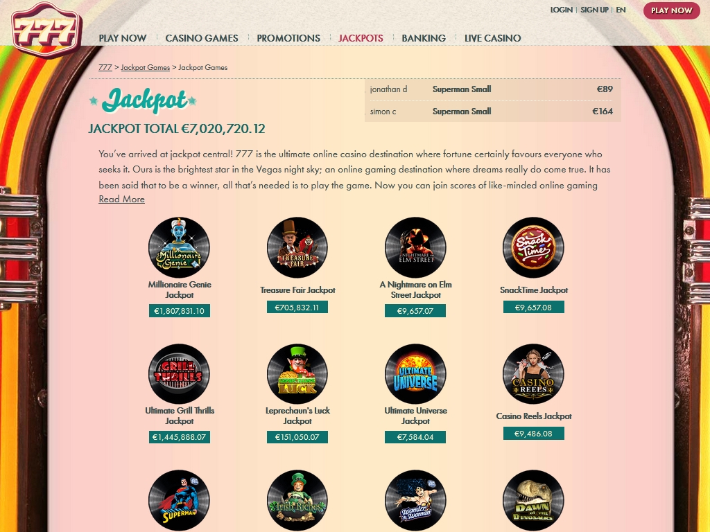 - Slots and Jackpots – Самая многочисленная категория с классическими 3-барабанными автоматами и 5-барабанными видео-слотами, а также моделями, в которых разыгрываются джекпоты.