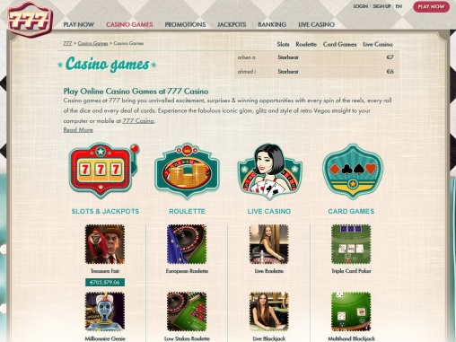 На момент написания обзора ассортимент игр 777 состоял из почти трехсот моделей разных жанров и брендов. Они разбиты на четыре основных группы: