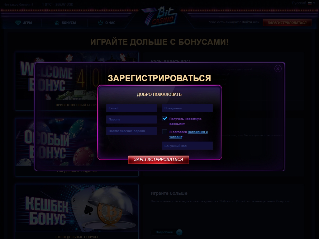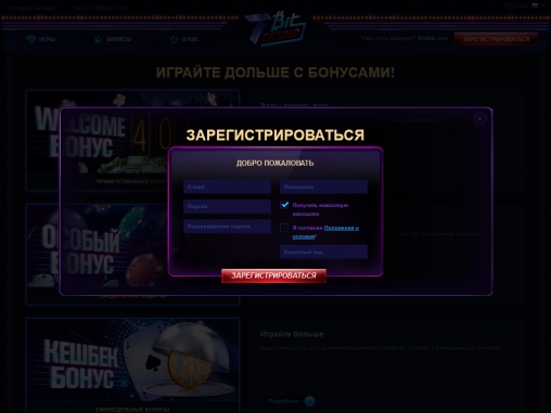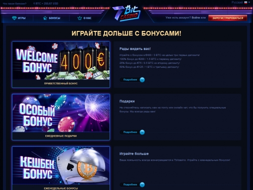 - Приветственный бонус предлагается на три первых депозита, которые новый игрок вносит после регистрации. Это 100% бонус до 200 евро или 1.5 биткойнов, 25% бонус до 75 евро или 0.5 биткойна и 50% бонус до 125 евро или 1 биткойна. Отыгрывать их нужно в двадцать раз по общим правилам, которые объясняются в специальном разделе.