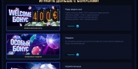 На три первых депозита в игре полагается бонусы в размере ста процентов. И это очень редкая акция в интернет-казино. Я такого больше нигде не встречал. Есть еще особые бонусы, которые начисляются только по решению администрации.