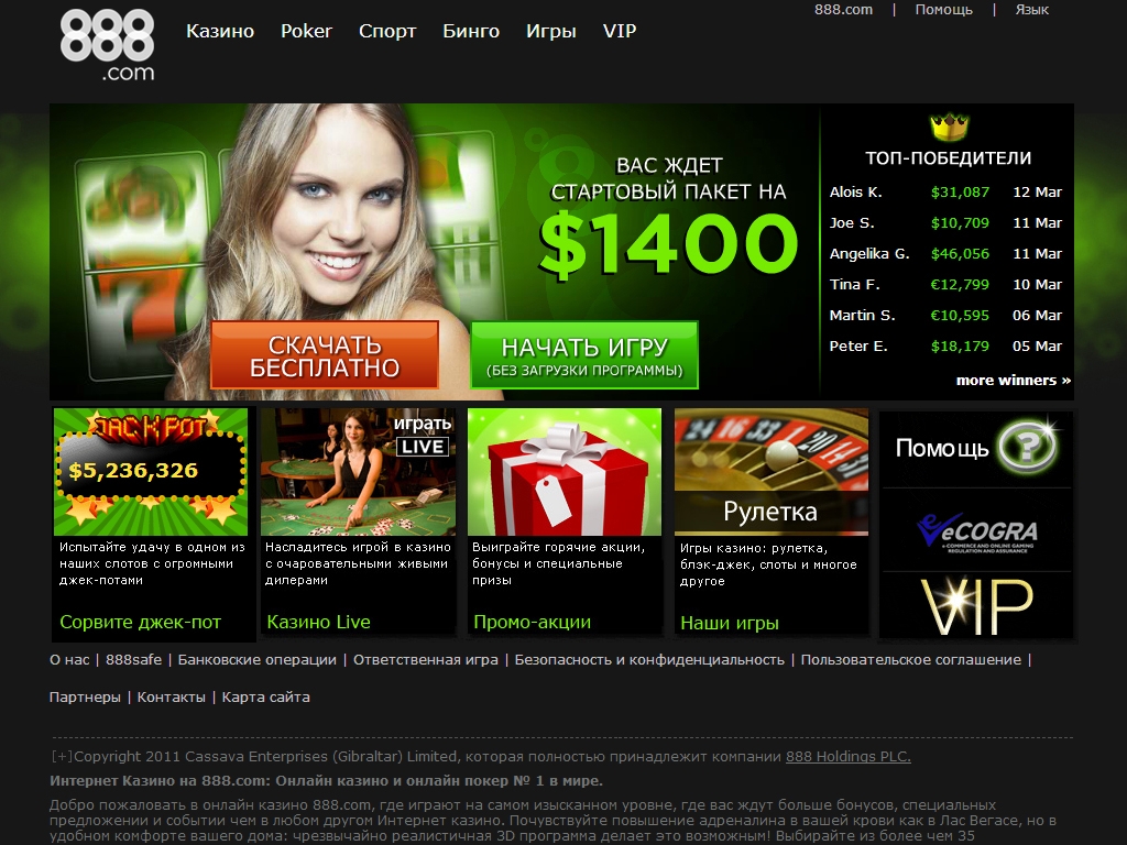 Главная страница онлайн казино 888