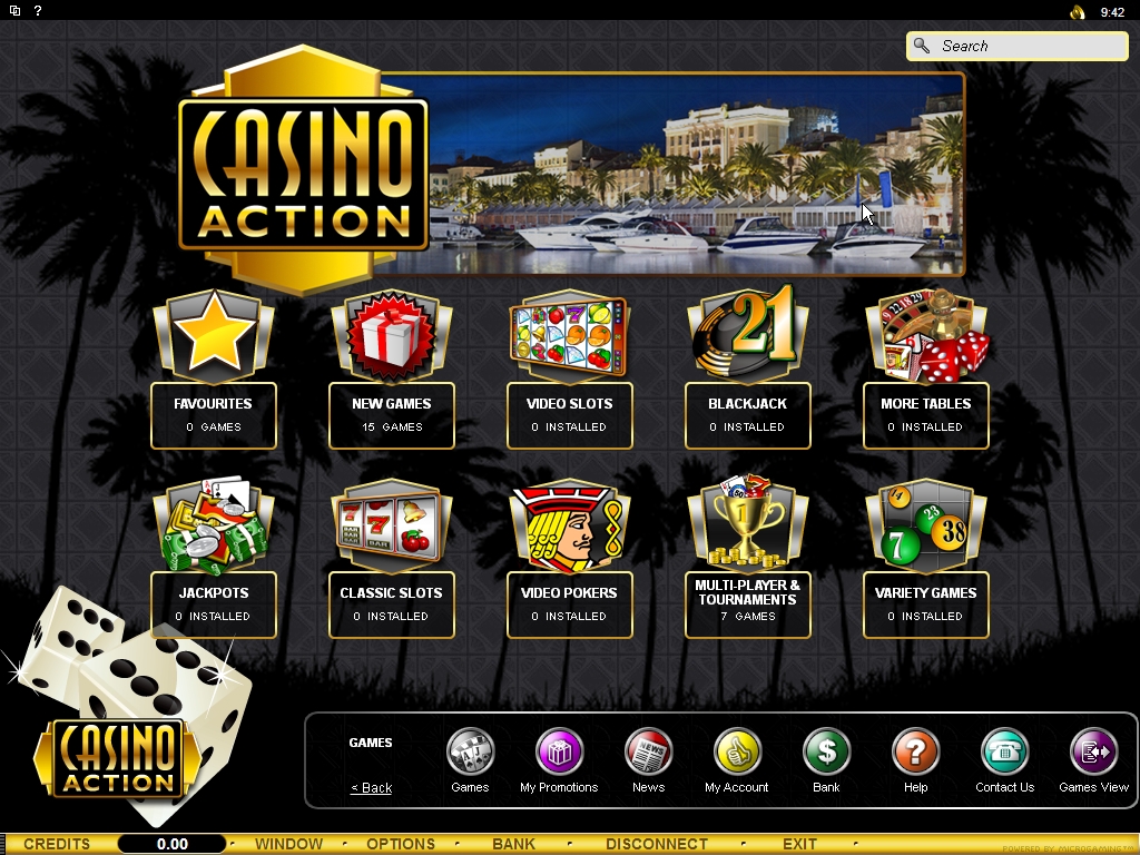В Casino Action доступно 426 современных онлайн игр в стиле казино Лас-Вегаса. Здесь можно найти практически любое азартное развлечение: несколько рулеток, разновидности покера, видео-покера, блэк-джека, множество других карточных и настольных игр, огромный выбор слотов, а также уникальные игры.