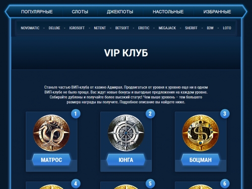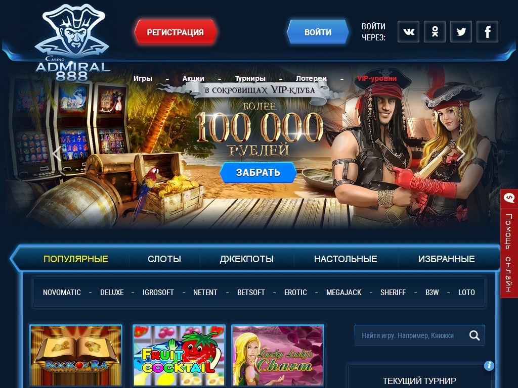 Помимо игровых автоматов, в Admiral 888 есть карибский покер. Накопительные джекпоты разыгрываются в десятке видео-слотов.