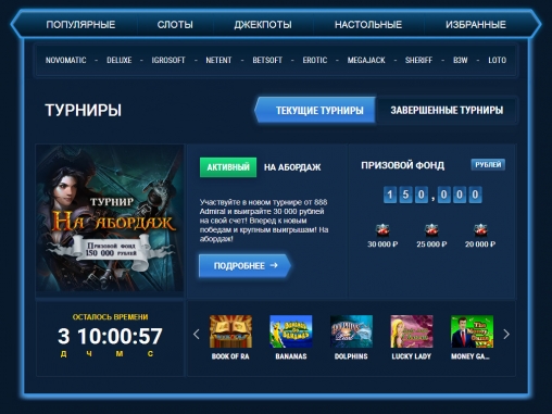 На официальном сайте заведения многое сказано о высокой репутации бренда «Адмирал», однако честность и надежность казино Admiral 888 ничем не подтверждается.