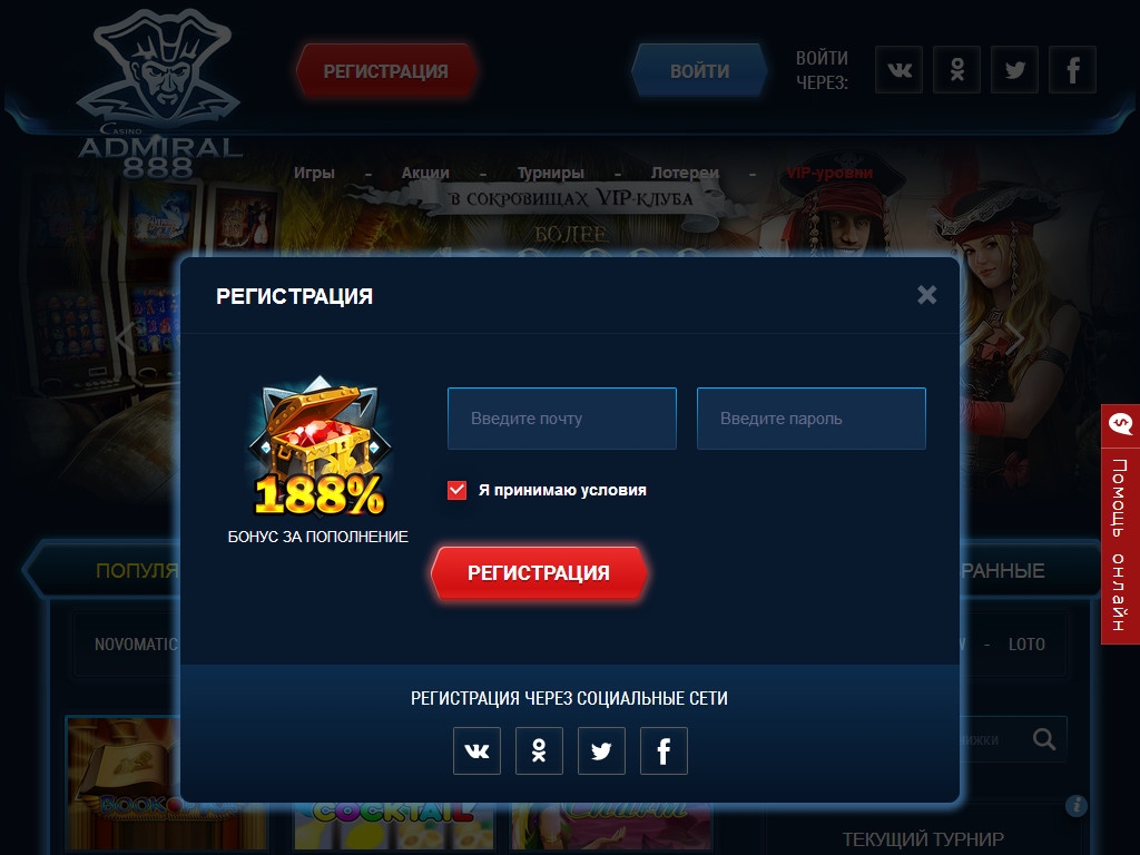 - Нет живого казино «Адмирал 888».