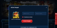 - Новички получают 188% бонус до 188 000 рублей. Они начисляются на первый после регистрации депозит при условии, что он не менее пятисот рублей.