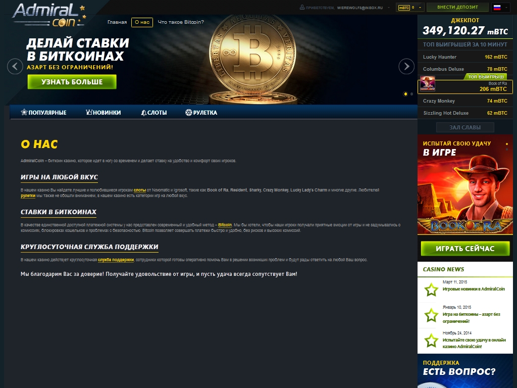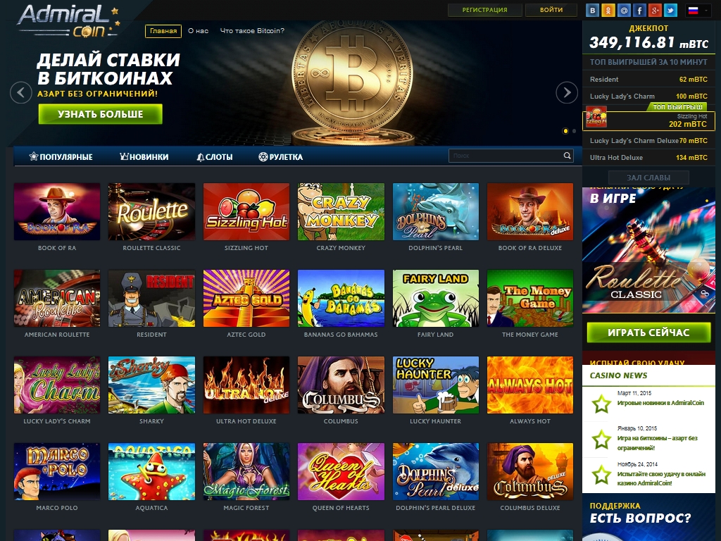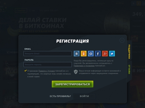 Данный обзор посвящен игорному сайту Admiral Coin, который, как можно догадаться по названию, принимает платежи в биткойнах. Это является, вероятно, наиболее интересной особенностью казино.