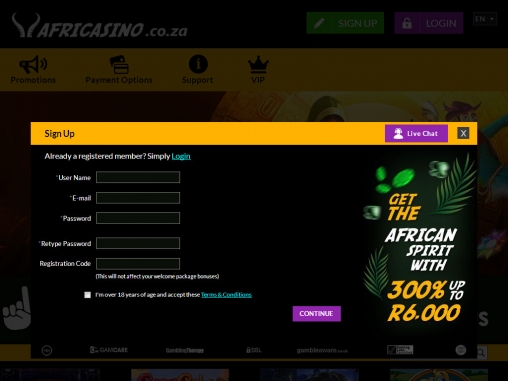 Во время регистрации на портале необходимо заполнить небольшую анкету и указать контактную информацию. Открывать счета запрещается жителям США, Великобритании и других стран, перечисленных под обзором Africasino. Дополнительные территориальные ограничения касаются софта NetEnt.