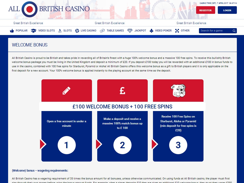 Допустив некоторую вольность, название All British casino можно перевести на русский как «100% британское казино», или даже «Чисто британское казино». Впрочем, администрация проекта рада не только жителям Туманного Альбиона. Клиентами заведения могут становиться пользователи из многих других стран, хотя территориальные ограничения также присутствуют. Обо всех плюсах и минусах allbritishcasino.com рассказывается в обзоре.
