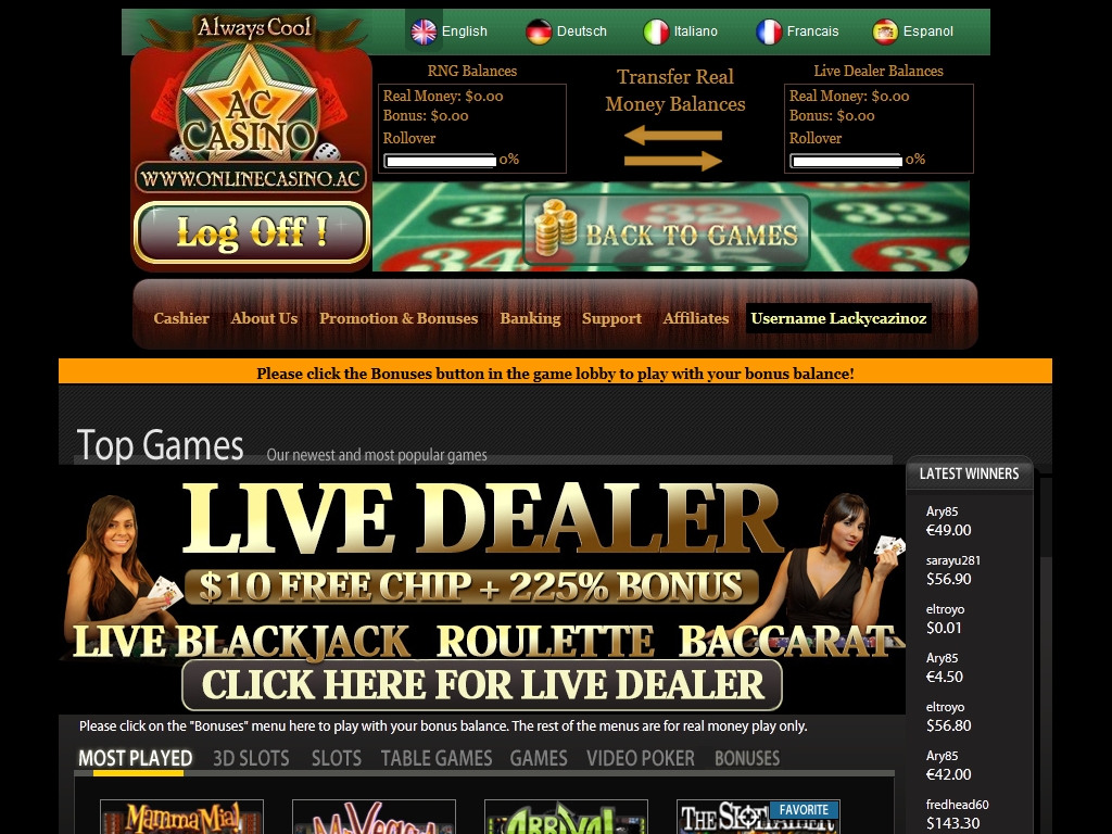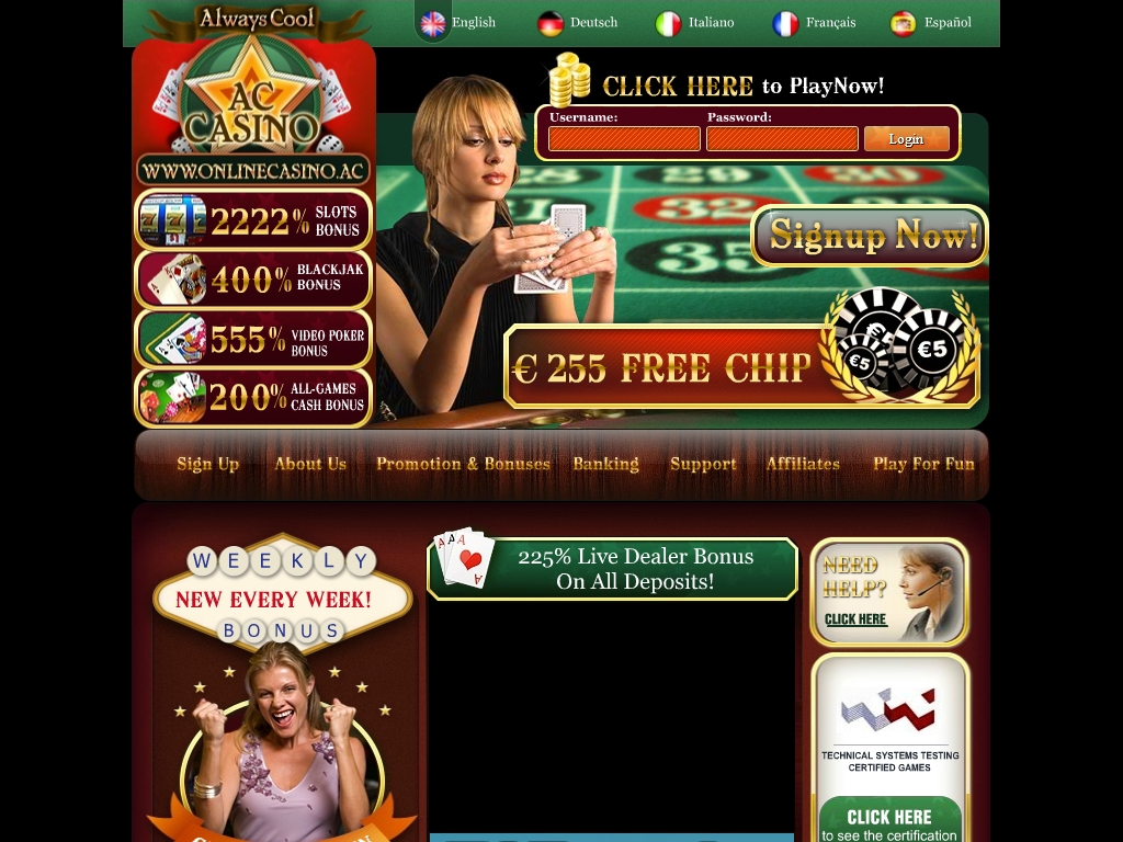 Далее он может выбирать бонусы на депозиты в зависимости от свои игровых предпочтений, так как в Always Cool Casino есть специальные предложения для поклонников слотов, видео-покера и блэкджека. Также здесь есть универсальный бонус на депозит, который можно отыгрывать в любых играх.