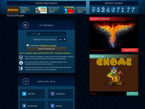 Россыпь золотых монет на огромном логотипе, заманчивые баннеры с рекламой бездепозитного бонуса, лотерей и других акций, бегущая строка с данными о последних выигрышах, счетчик прогрессивного джекпота – таков дизайн рассматриваемого заведения. Нельзя сказать, что он производит плохое впечатление, но оформлению явно не хватает оригинальности.