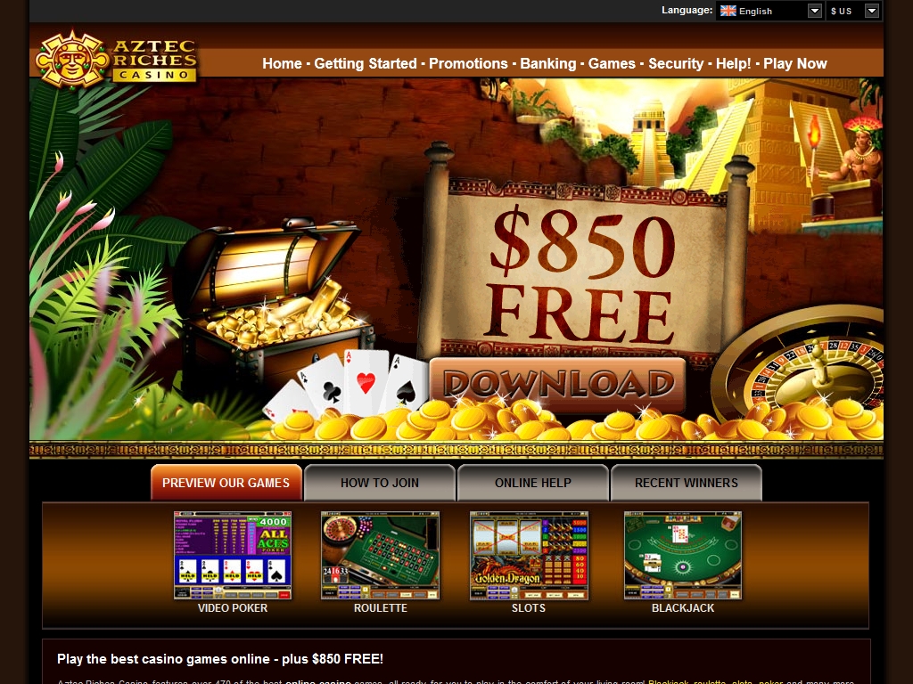 В Aztec Riches Casino пользователям предлагается свыше четырехсот великолепных онлайн игр, среди которых интересные разновидности традиционных для всех казино азартных развлечений, уникальные и тематические игры, огромное разнообразие слотов, множество видео-покеров. Во многих из игр можно стать обладателем прогрессивного джек-пота.