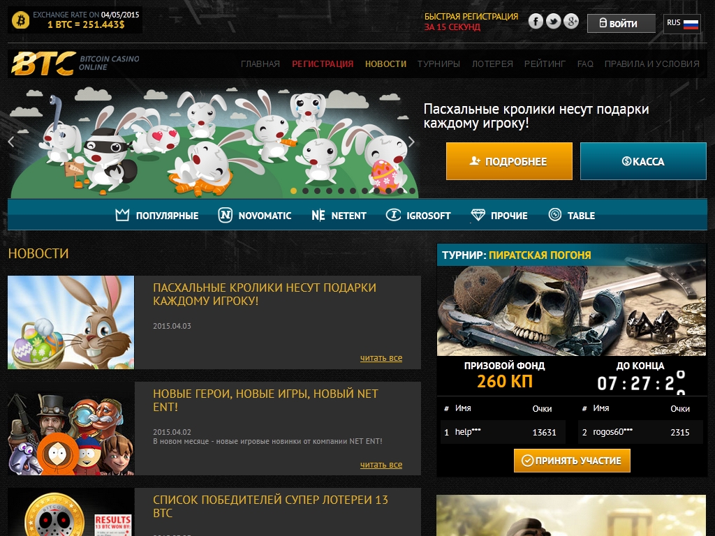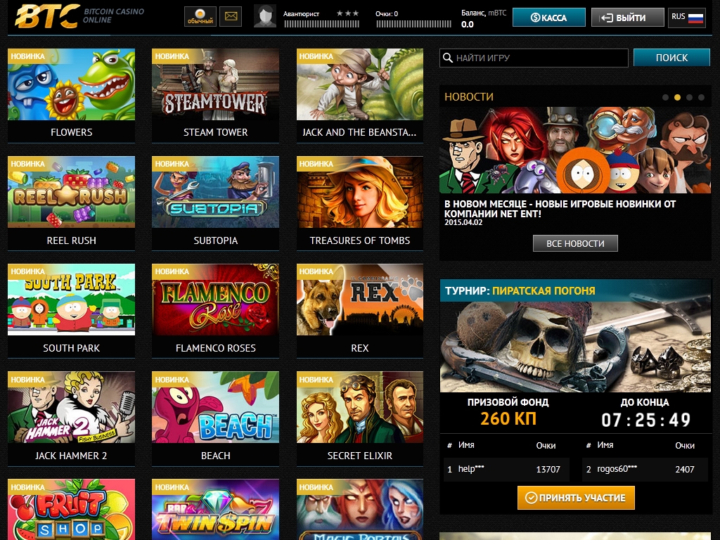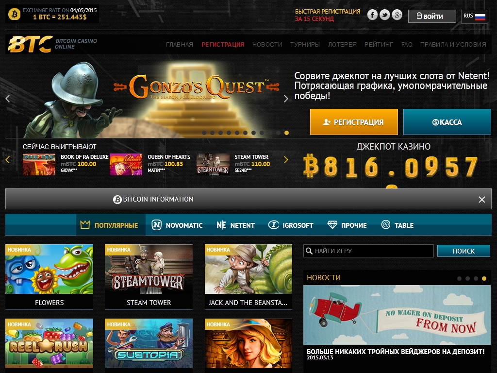 BTC предлагает пользователям азартные игры многих известных брендов, в числе которых Novomatic, Net Entertainment, Igrosoft и другие.