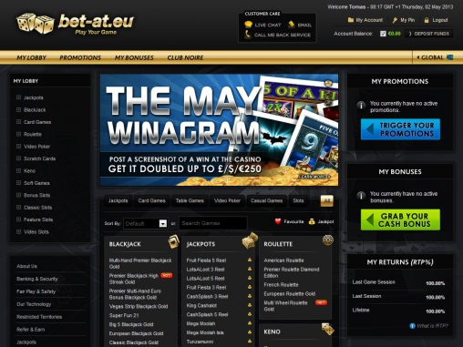 На главной странице сменяют друг друга очень красивые баннеры с рекламой услуг, предоставляемых Bet At Eu Casino. Все страницы сайта и программное обеспечение выдержаны в едином стиле. В целом, пользоваться казино приятно и удобно.