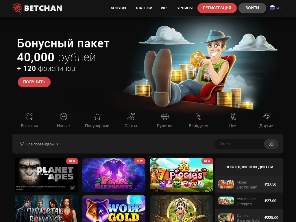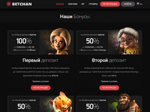 Игровая площадка Betchan является лучшим азартным ресурсом в сети интернет, на котором собрано более 2000 тысяч игровых стимуляторов, карточных игр и видео-слотов от ведущих мировых разработчиков. Каждый пользователь надежно защищен от хакерских злодеяний. Быстрое пополнение и вывод денежных средств, позволяет наиболее правильно организовать игровой процесс.