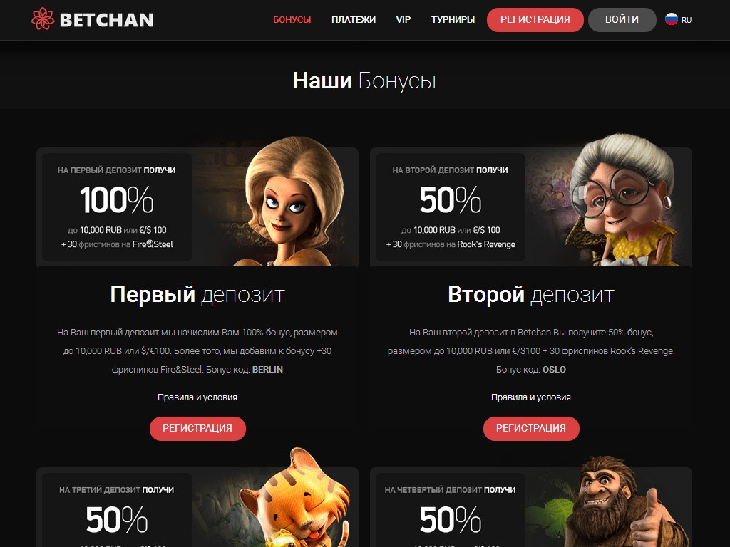 Онлайн-казино «Бетчан» принимает: