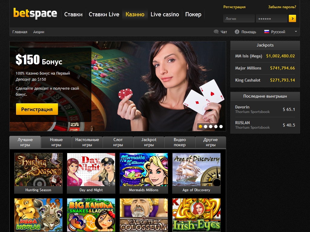 Betspace Casino предлагается на нескольких языках, включая русский. Пользоваться услугами сайта могут лица, достигшие восемнадцатилетнего возраста.