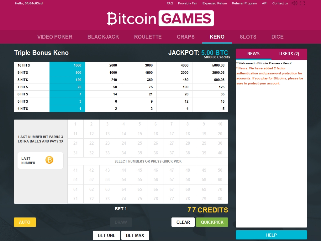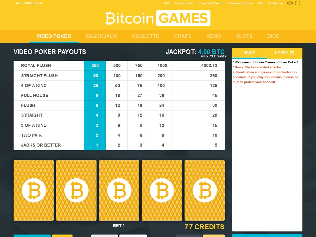 Каждому посетителю сайта автоматически присваивается анонимный счет, который он может использовать для игры на биткойны.