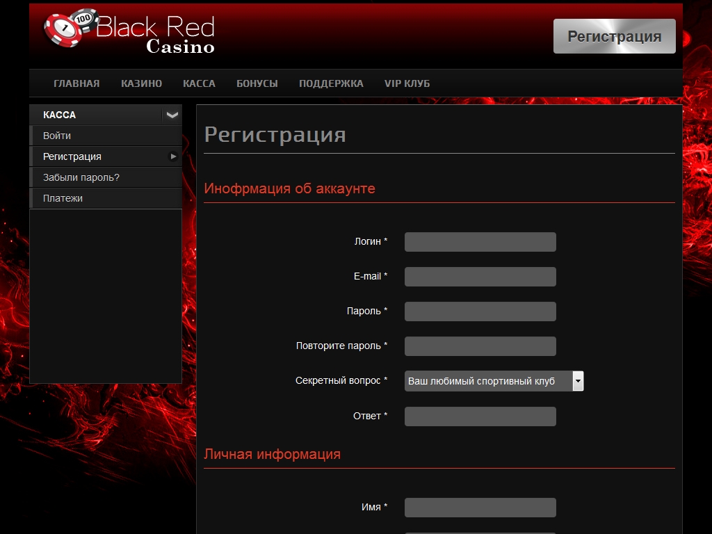 Накопительные джекпоты в Black Red не разыгрываются. Турниры на момент работы над статьей не проводились.