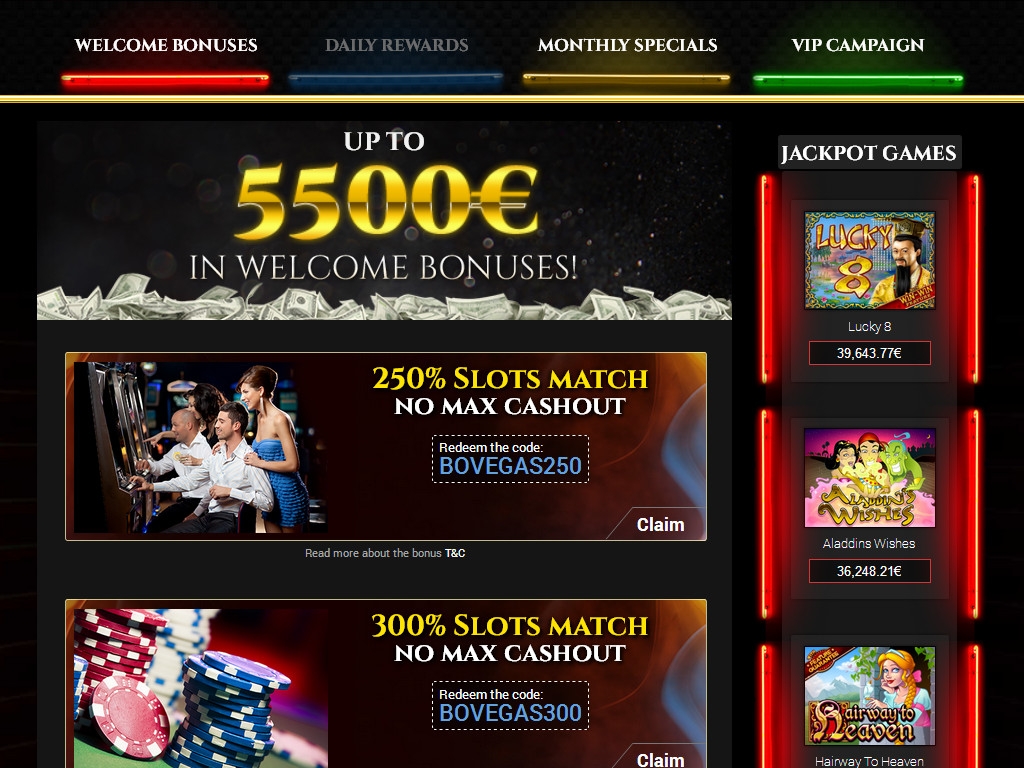 На платформе Real Time Gaming работают многочисленные интернет-казино, привлекающие клиентов разнообразием игр, крупными джекпотами и обслуживанием пользователей из США. Портал bovegas.eu также использует софт этого бренда, предлагая игрокам многочисленные бонусы и другие преимущества, о которых рассказывается в обзоре.