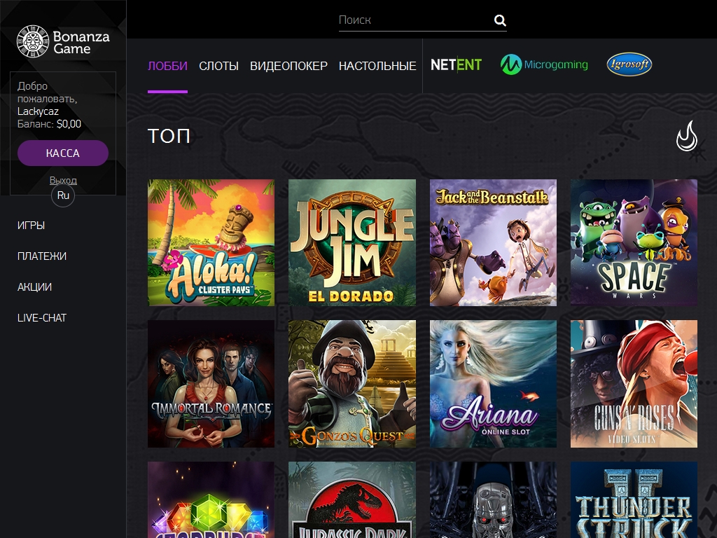 В Bonanza Game представлены модели производства Microgaming, NetEnt и Igrosoft.