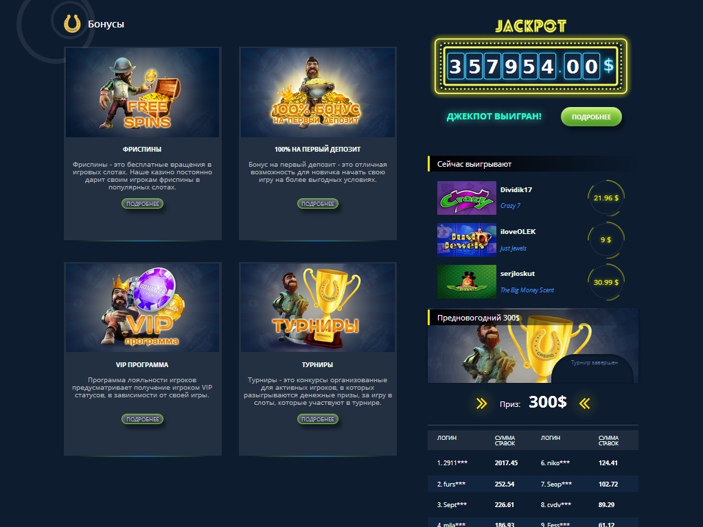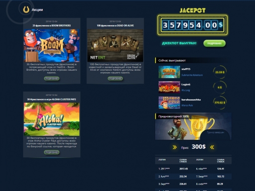 - Розыгрыши джекпотов.