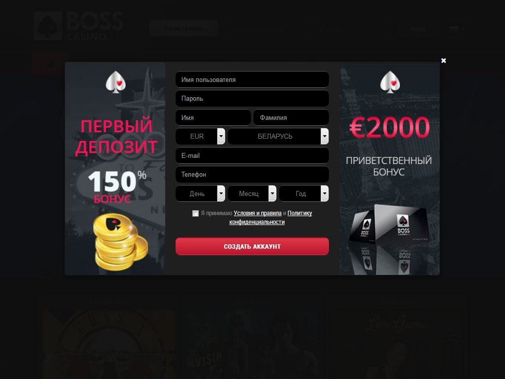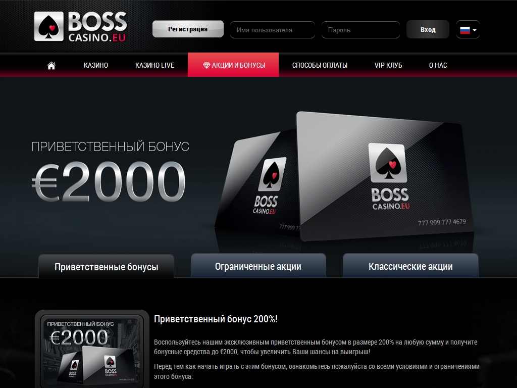 Ниже вкратце о главных бонусах, доступных в bosscasino.eu: