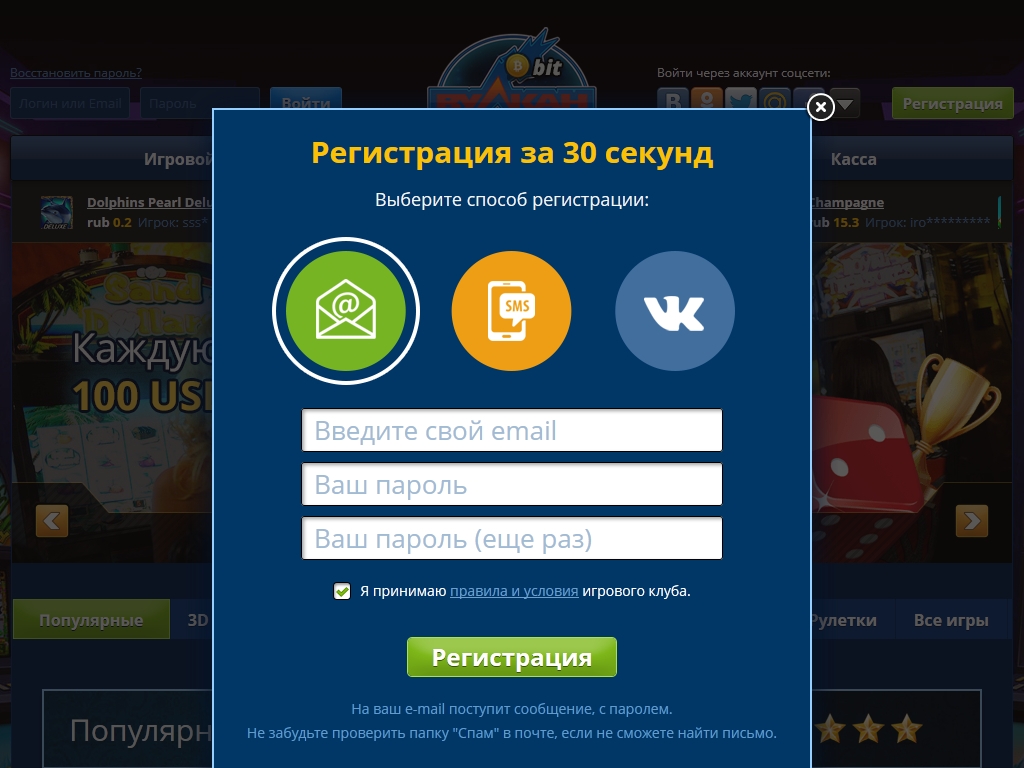 Играть можно в рублях или биткойнах