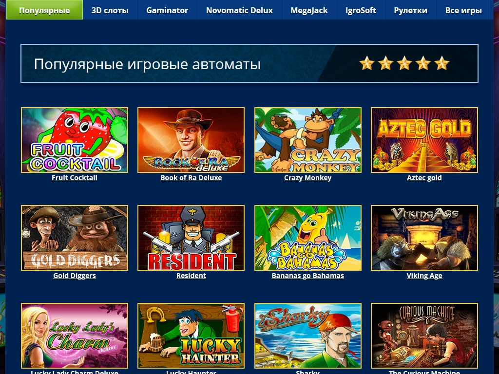 Казино предлагает азартные игры нескольких известных производителей, включая Novomatic, Igrosoft, MegaJack, Net Entertainment, BetSoft Gaming и другие бренды. Открываются они непосредственно в интернет-браузере. Требования к мощности компьютера и скорости связи минимальные.