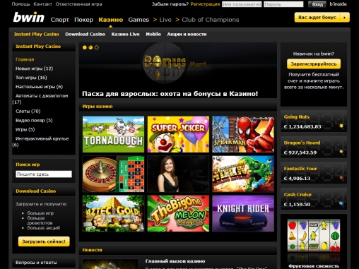 Полный ассортимент игр представлен в скачиваемой версии bwin.