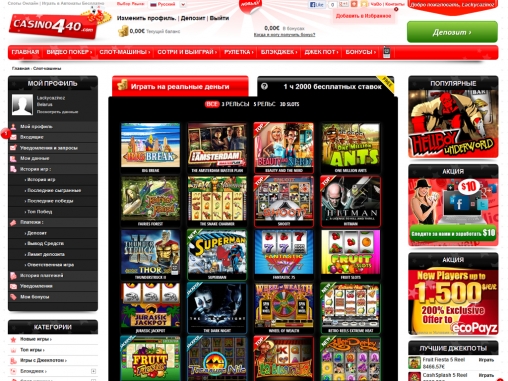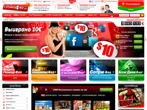 Онлайн-казино Casino 440 оформлено, на наш взгляд, излишне пестро. От невероятного количества мелких, разноцветных элементов рябит в глазах, отчего пользоваться сайтом заведения не всегда комфортно. Кроме того, во время знакомства с Casino 440 очень надоедают всплывающие окна, а некоторые разделы нельзя просмотреть, не зарегистрировавшись в казино.
