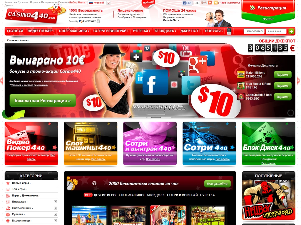 В казино 440 разыгрывается несколько прогрессивных джек-потов. Турниры на момент написания обзора не проводились.