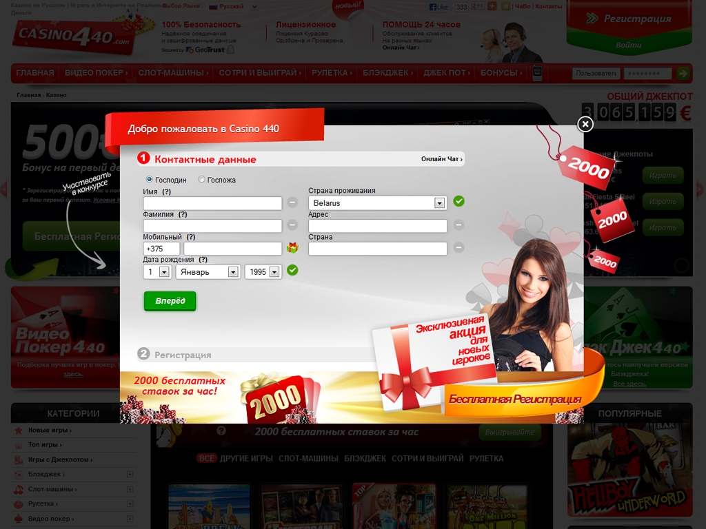 Casino 440 – это интернет-казино, которое открылось в 2013 году. Оно принадлежит компании 440 Group NV, которая располагается в Кюрасао (юридический адрес вы найдете в пользовательском соглашении) и работает по лицензии местного правительства.