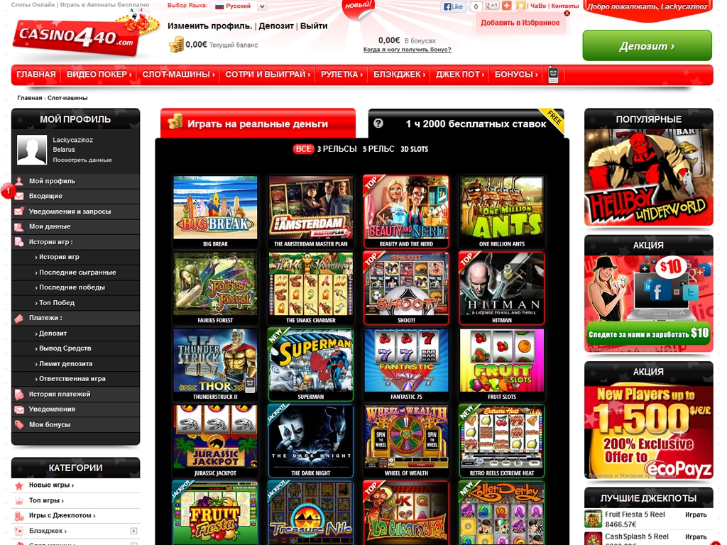 Решил заглянуть на казино 440,узнал о нем от друга.С первого взгляда картинка сайта действительно выглядит немного пестрой,но это сразу переходит на второй план когда замечаешь,как быстро работает сайт!Ничего не тормозит,играть одно удовольствие.Случилась одна проблема с регистрацией,так агенты техподдержки сразу выручили!5 из 5!