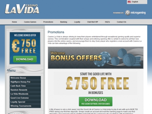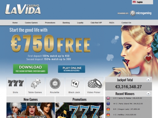 Играть в Casino La Vida можно как в устанавливаемой, так и во флеш-версии. Скачать клиентскую программу можно с официального сайта, который переведен на английский, немецкий, испанский, французский, итальянский, голландский и португальский языки.