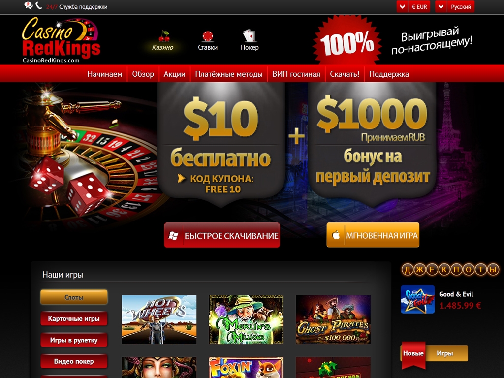 RedKings принимает доллары, евро, рубли и другие валюты. Все примеры на сайте указаны в евро.