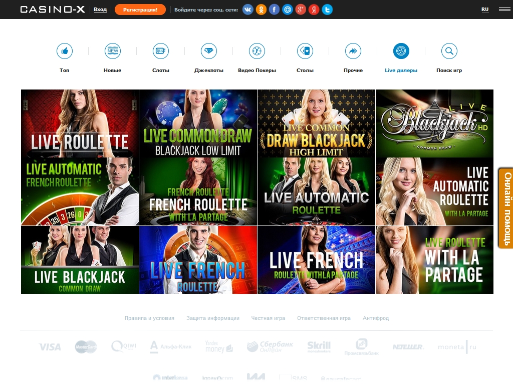С настоящими крупье здесь можно играть в разные азартные игры, включая несколько разновидностей блэкджека, рулетки и покера. Следует отметить, что в данном формате представлены не только традиционные, но также необычные модели, на которые стоит обратить внимание. Подробный обзор лайв-казино Х вы найдете в отдельной статье на нашем портале.