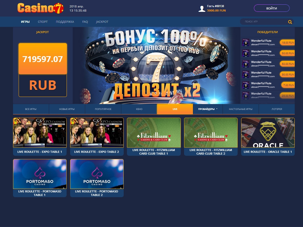 - Ограниченный выбор игр в Casino7 live;