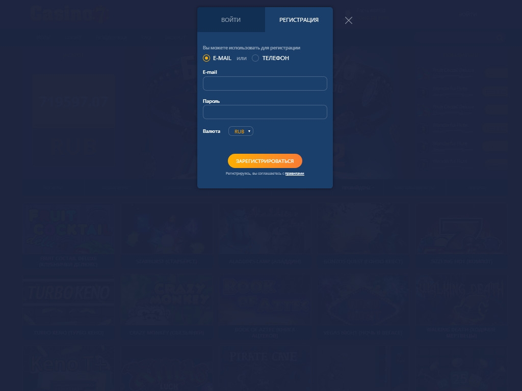 Клиенты могут играть в Casino7 на рубли, гривны, тенге, доллары, евро и другие денежные единицы. Валюта выбирается при регистрации счета.