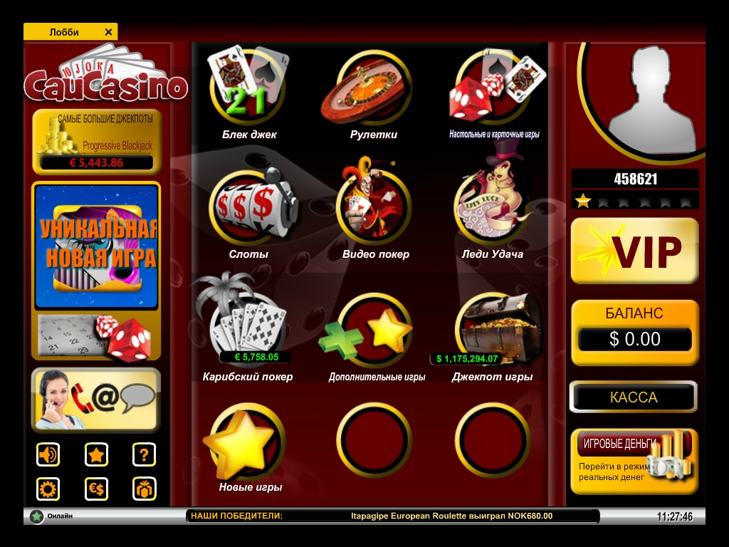 Как было сказано в предыдущем разделе, в CauCasino доступны азартные онлайн-игры от компании SkillOnNet. Они разбиты на несколько категорий: настольные игры (блэкджеке, покеры, рулетки и прочее), слоты (хороший выбор разнообразных игровых автоматов), видео-покеры (несколько версий), другие игры (модели, не вошедшие в остальные категории) и джек-поты (игры, в которых можно бороться за прогрессивные джек-поты).