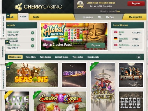 На сайте Cherry представленные модели классифицированы по жанрам: видео-слоты, настольные игры, видео-покеры и классические слоты. Кроме того, в отдельные дополнительные группы вынесены наименования с накопительными джекпотами и самые популярные у клиентов игры.