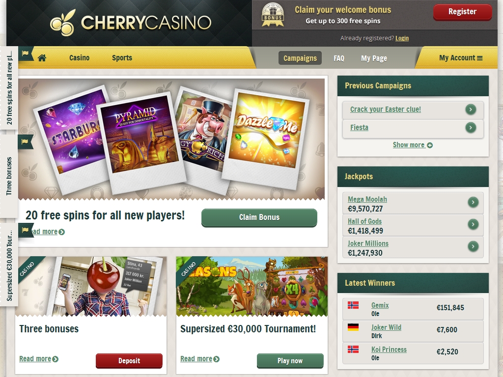 Cherry – это казино с очень богатой историей, которая началась в 1963 году с игорного заведения, открытого в Швеции. Со временем более половины шведского рынка гемблинга принадлежало компании Cherry Group. В 1996 году Cherry начало деятельность в Интернете, а с 2000 года работает сайт cherrycasino.com, о котором пойдет речь в обзоре.