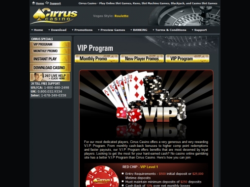 Клиенты Cirrus Casino могут снимать не более двух тысяч долларов в неделю, хотя для VIP игроков лимит может быть увеличен.